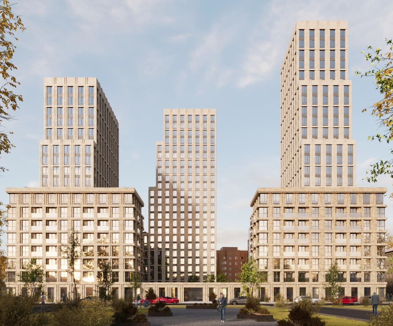 На площади около 1 Га запланировано строительство 2 жилых корпусов от 8 до 32 этажей.